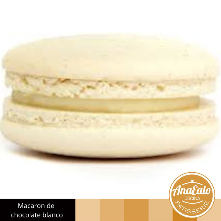 Ingredientes: Harina de almendras, azúcar impalpable, huevo, azúcar, colorante, crema, manteca y chocolate cobertura blanco.