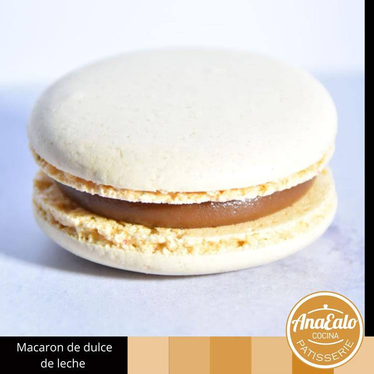 Ingredientes: Harina de almendras, azúcar impalpable, dulce de leche, huevo, azúcar, colorante, crema y manteca.
