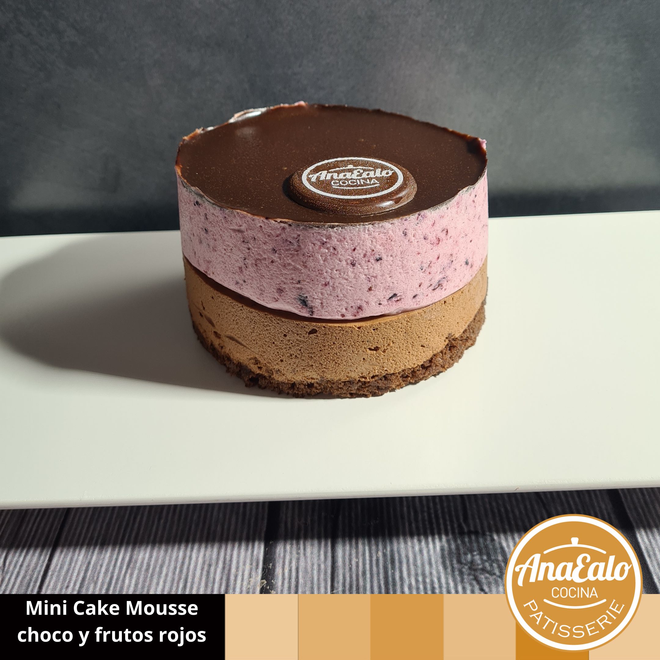Descripción: Mini cake Mousse de chocolate semiamargo y frutos rojos